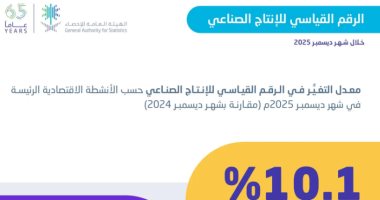 وأظهرت نتائج النشرة التي أصدرتها الهيئة العامة للإحصاء للإنتاج الصناعي لشهر ديسمبر من عام 2025م، أن الرقم القياسي الفرعي لنشاط التعدين واستغلال المحاجر سجَّل ارتفاعًا سنويًا بنسبة 13.2%، كما ارتفع كلٌ من الرقم القياسي الفرعي لنشاط الصناعة التحويلية، والرقم القياسي الفرعي لنشاط إمدادات المياه، وأنشطة الصرف الصحي وإدارة النفايات ومعالجتها بنسبة 3.2%و9.4% على التوالي، في حين سجَّل الرقم القياسي الفرعي لنشاط إمدادات الكهرباء والغاز والبخار وتكييف الهواء انخفاضًا سنويًا بنسبة 2.5%.