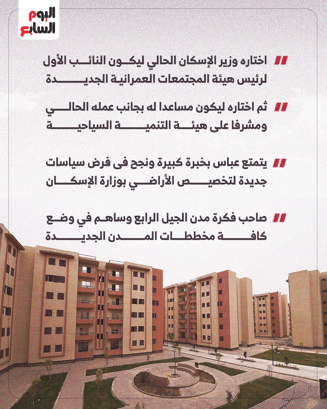 أختاره وزير الاسكان الحالي ليكون النائب الاول لرئيس هيئة المجتمعات العمرانية الجديدة