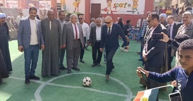 طلاب المدسة يستقبلون المحافظ بحفاوة كبيرة ويلعب كرة القدم معهم