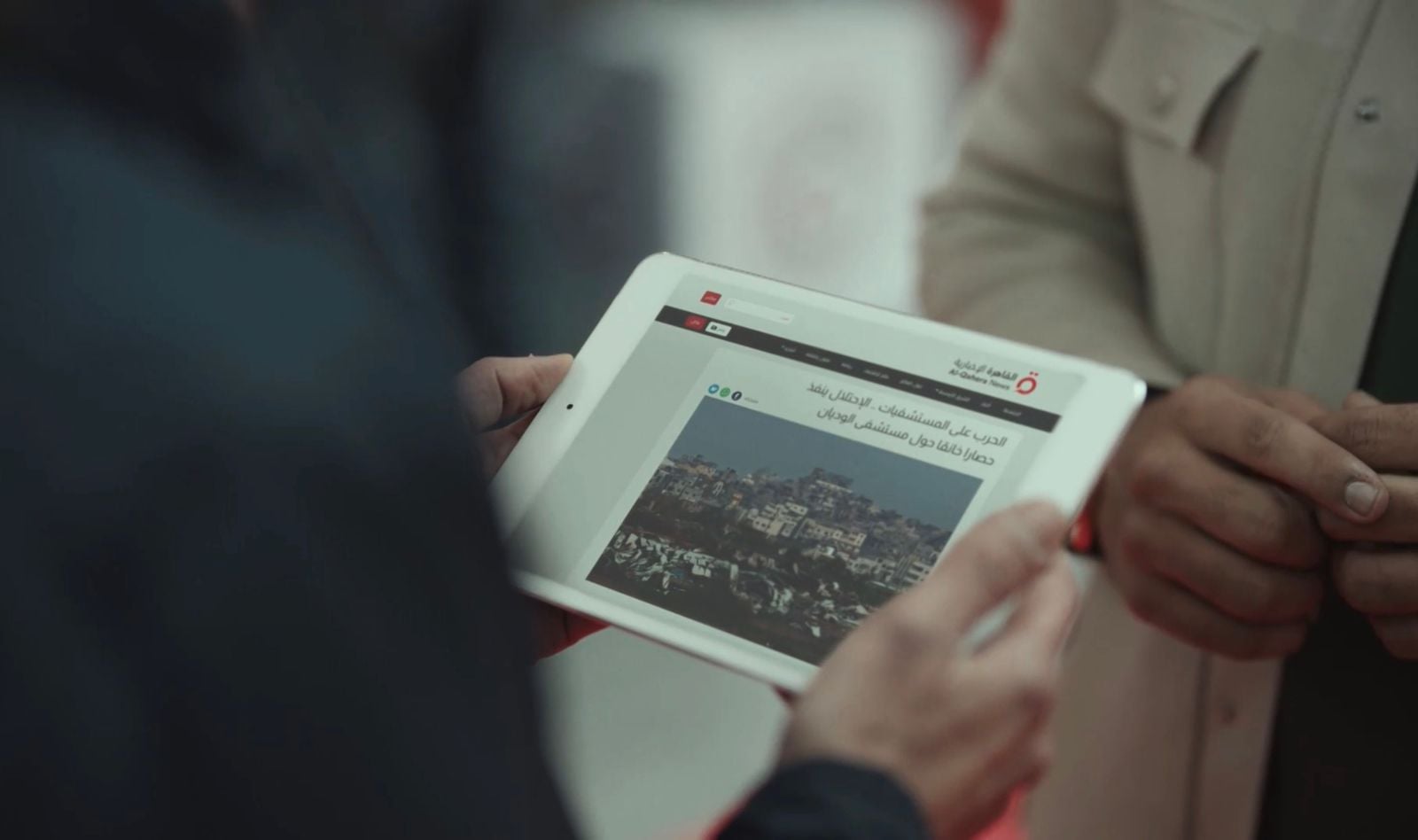 شهدت الحلقة الرابعة من مسلسل صحاب الأرض ظهور خاص لموقع قناة القاهرة الإخبارية، من خلال مشهد ثريا (إيناس الفلال) وهي تتحدث مع أحد رجال الهلال الأحمر ويتحدثان عن دخول المساعدات إلى رفح، ليخبرها أن هناك خبرا ضروريا عليها مشاهدته ويعطيها جهازا لوحيا مفتوح عليه القاهرة الأخبارية وهي تبث خبر حصار الجيش الإسرائيلي للمستشفى.