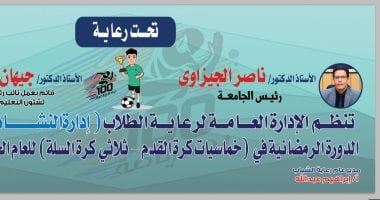 وأوضحت جامعة بنها، في بيان لها، أنه تقام فعاليات الدورة فى الفترة من 22 فبراير حتى 8 مارس المقبل بمشاركة 21 فريقًا في خماسيات كرة القدم، يمثلون كليات الجامعة، ومقر الجامعة بالعبور، وفريقا لطلاب ذوى الهمم بالجامعة، وفريقا للطلاب الوافدين، وفريق للمدينة الجامعية، ومعهد التمريض بالجامعة، بالإضافة إلى مشاركة 8 كليات في ثلاثي كرة السلة.