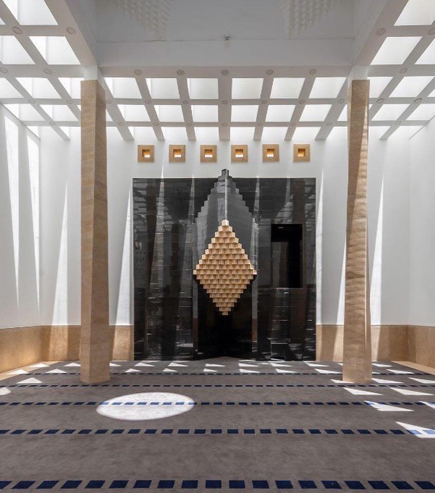 أما من الداخل، فتأسر التفاصيل الفنية وجدان المصلين، إذ زين المحراب بمكعبات صغيرة منقوش عليها أسماء الله الحسنى، في مشهد يضفي خشوعا خاصا، ويجعل المصلي يشعر بالقرب من الله مع كل سجدة ودعاء.